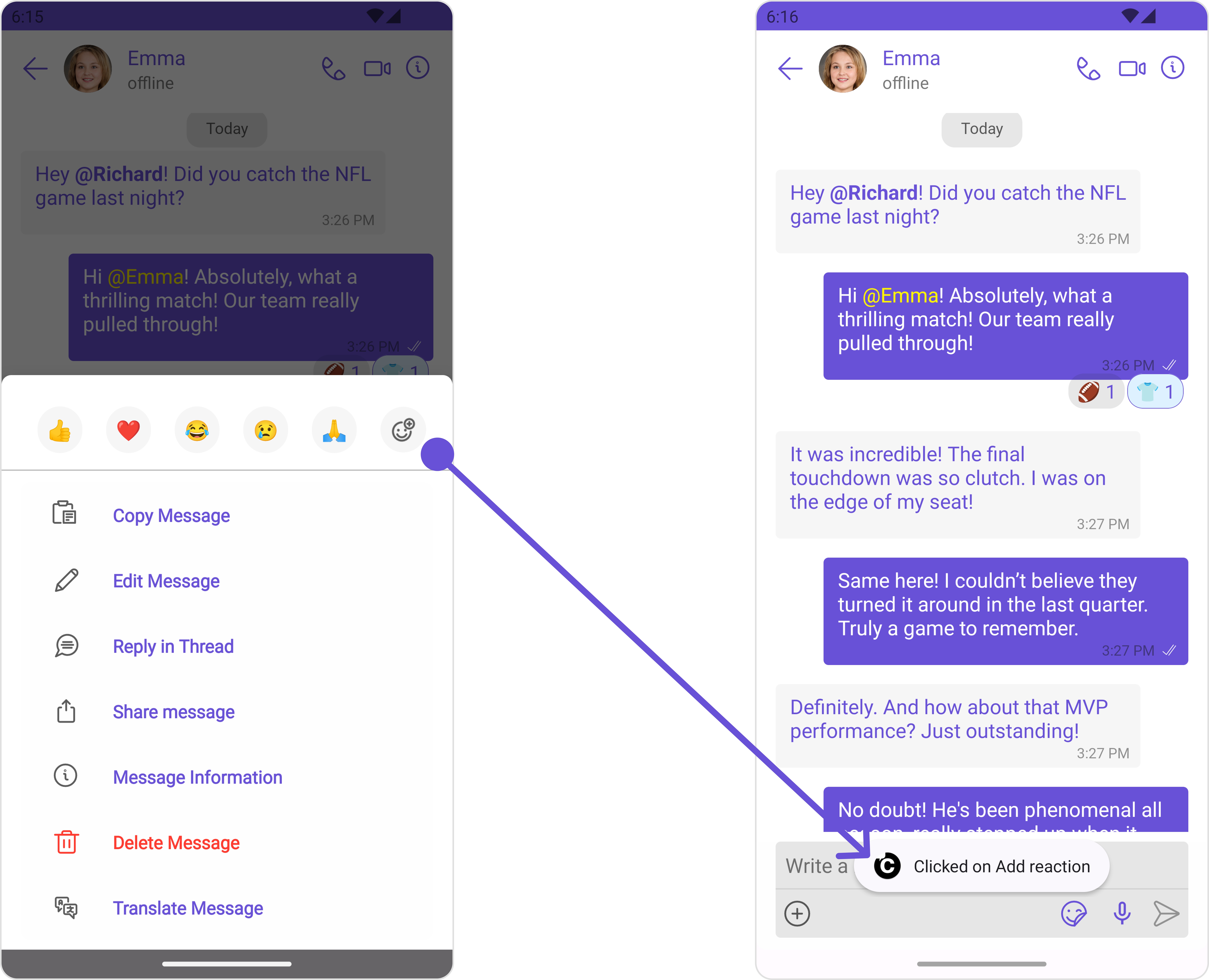messageList.setOnReactionClickListener(new OnReactionClickListener() {