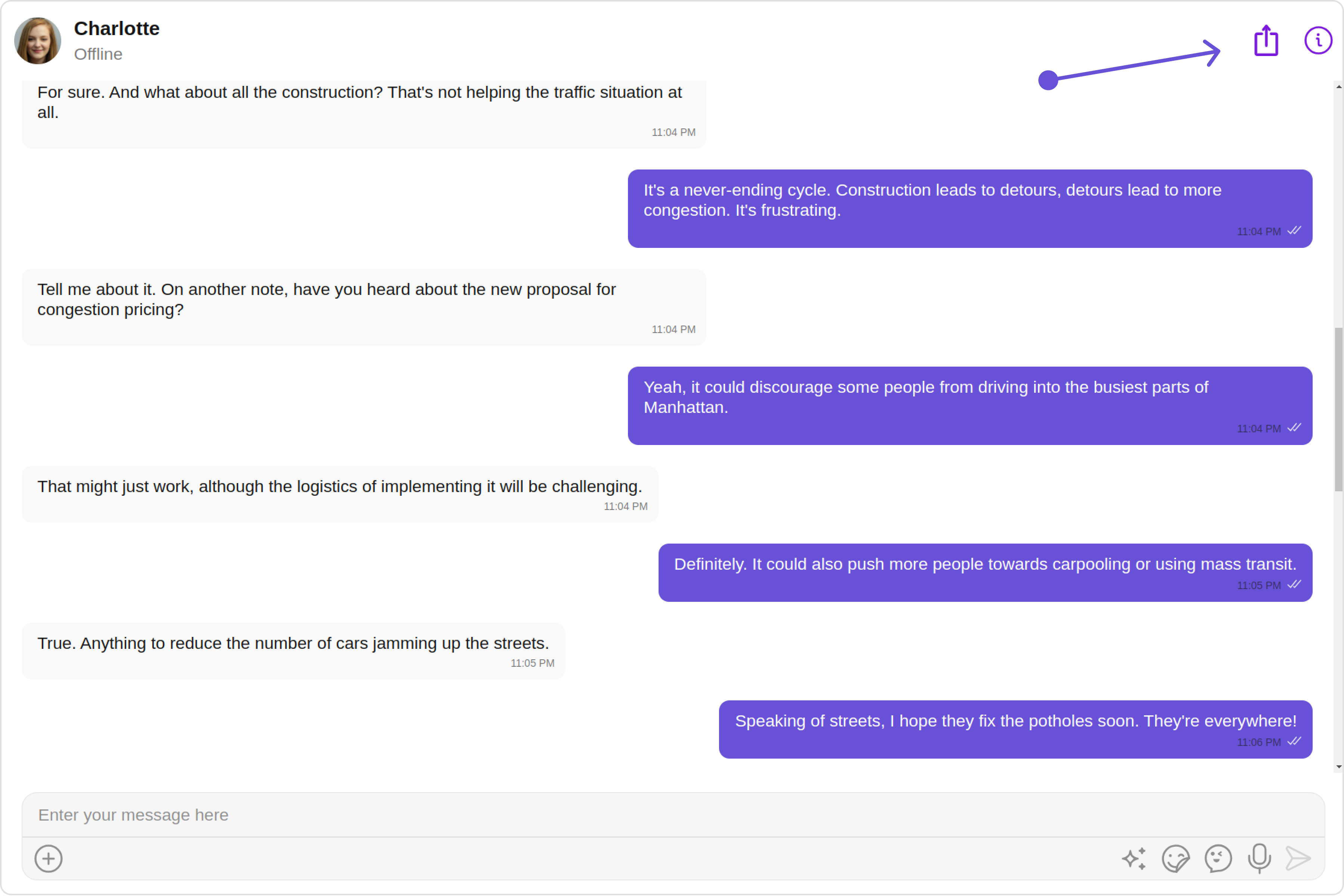 Disable TypingUsed to toggle functionality for showing typing indicator and also enable/disable sending message delivery/read receiptsdisableTyping=true